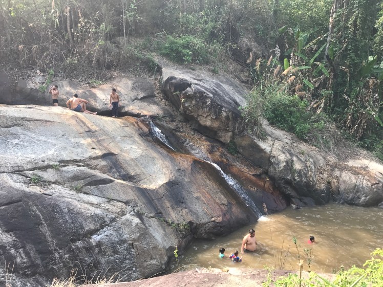 After a long morning of hikes and exploring, we wanted nothing more than to cool off, and so we got into our bathing suits and stopped at Mor Pang waterfall. I loved this spot because it seemed like a locals gem. The falls were filled with children taking turns sliding down the rocks. We were too chicken to try it, but we sat around the falls to enjoy the mid-afternoon break.