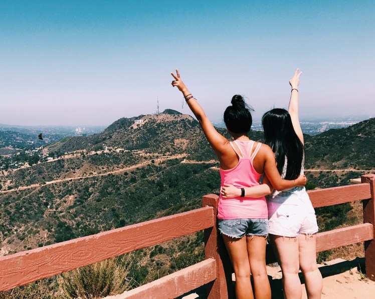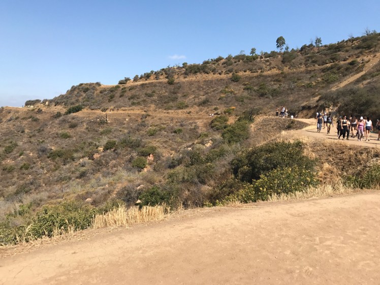 - Hiking the Hollywood Sign. Before heading to the beach for the day, we wanted to do at least one active thing. So first in in the morning, we laced up our sneakers and headed to Griffith Park to hike the Hollywood sign. The trail itself was exposed and HOT but 3 miles later we ended up getting a solid side-angle view of the sign and killer view of downtown LA. You can see the Hollywood sign in this photo if you squint 😉