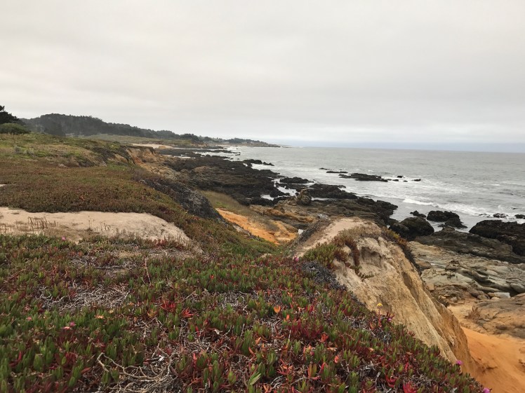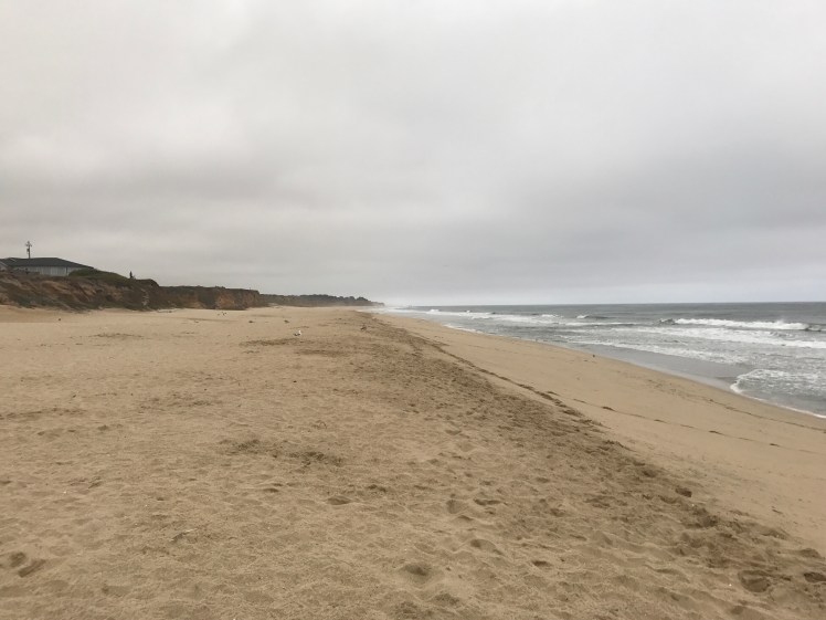 - Asilomer Beach / drive through Carmel and Monterey. The Carmel and Monterey towns were next. We stayed in the car through most of it and got a feel of the cute beach towns from our drive. We did pull over Asilomer Beach for a few minutes. Michelle and I felt like the cloudiness of the day was making all the beaches start to blend together, and so we decided to skip Carmel beach/Pebble beach/other beaches in the area and just drive through them.