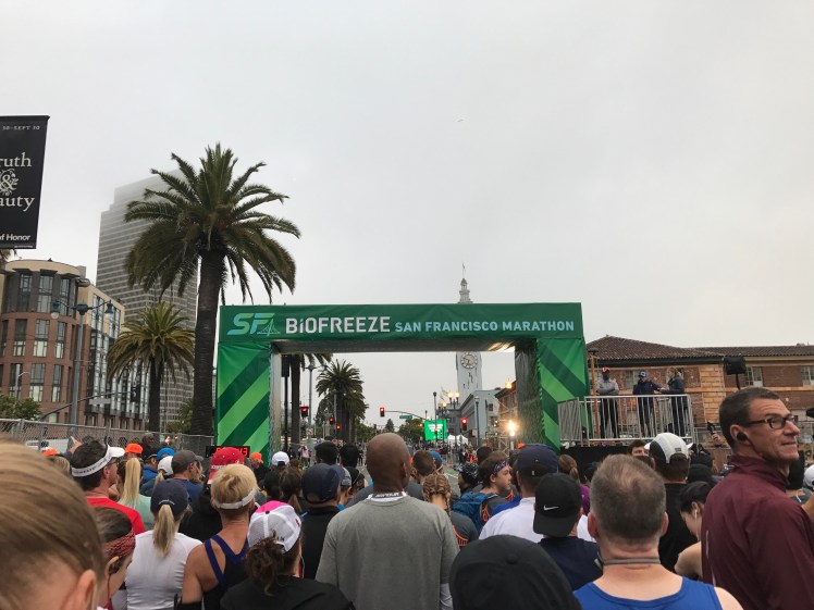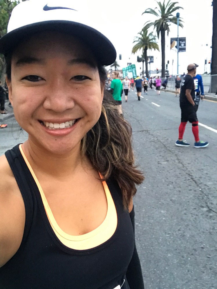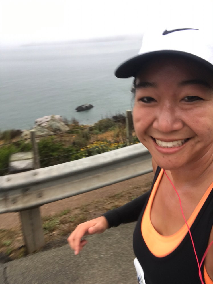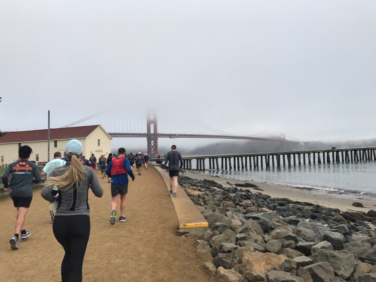 By the time we got to the bottom of the Golden Gate bridge, I was feeling much better and excited to tackle this race. Only took 4 miles to get to this point 😛