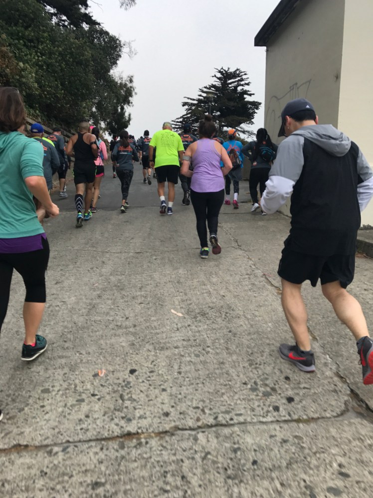 All that climbing uphill meant one thing – we got to fly downhill for the next mile! I LOVED this portion, for obvious reasons. I usually take care of my knees when I run downhill but this time, I didn’t care, I just let them fly. The views of the coast through the Presidio were gorgeous. Afterwards, we entered the streets of the Richmond which felt like peaceful suburbia with some rolling hills. I was feeling strong.