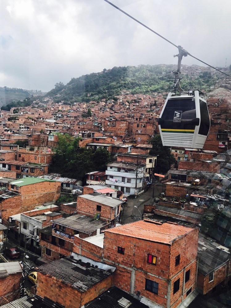 After a few stops, I transferred to the metro-cable, a series of cable cars that are a part of their public transportation system. Medellin is built among several mountains, and the metro-cable connect those who live up in the mountains to the city center below, while offering absolutely breathtaking views. These cable cars are not a tourist attraction – they are actually what locals in Medellin take to and from work/school everyday, so unique!