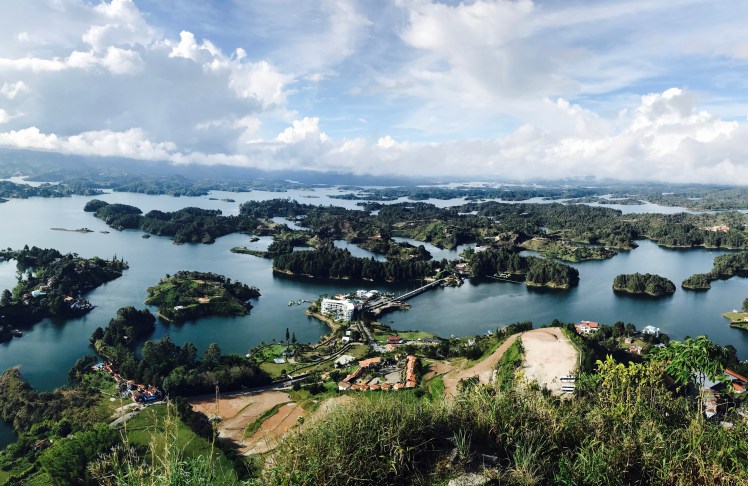 After yesterday, I was pretty city-ed out. Medellin has lots of day-trip options to get out into nature, and so I decided to head to Guatapé, a popular town 2 hours from Medellin with a huge rock that people climb up. I took a van joined with others from different hostels. The ride was wind-y and scenic, driving through the beautiful Andes mountains. We picked up a live performer along the way who played traditional music from Cartagena, so good!
