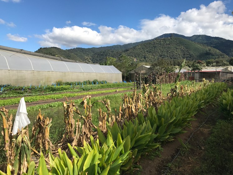 We met a little outside of town at Caboa Farm, an organic farm that had a farmer’s market, food, and live music on Saturdays. It was nice to get out of Antigua for a bit and chill on this beautiful property. I got there a little before Jared and strolled around the fields, greenhouses, and small network of trails.