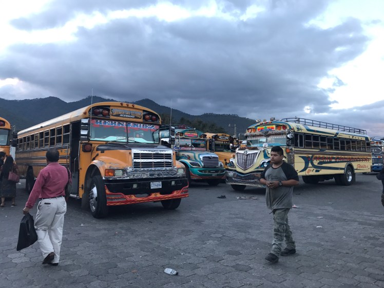 We passed by these chicken buses – famous in Guatemala. Apparently when school buses retire in the U.S., they get driven all the way down to this particular lot in Guatemala, painted like in ridiculous colors (to look like a chicken), and then used as transit between cities. They are the cheapest (and most uncomfortable) way to get around Guatemala – imagine hours sitting on a school bus, eek!