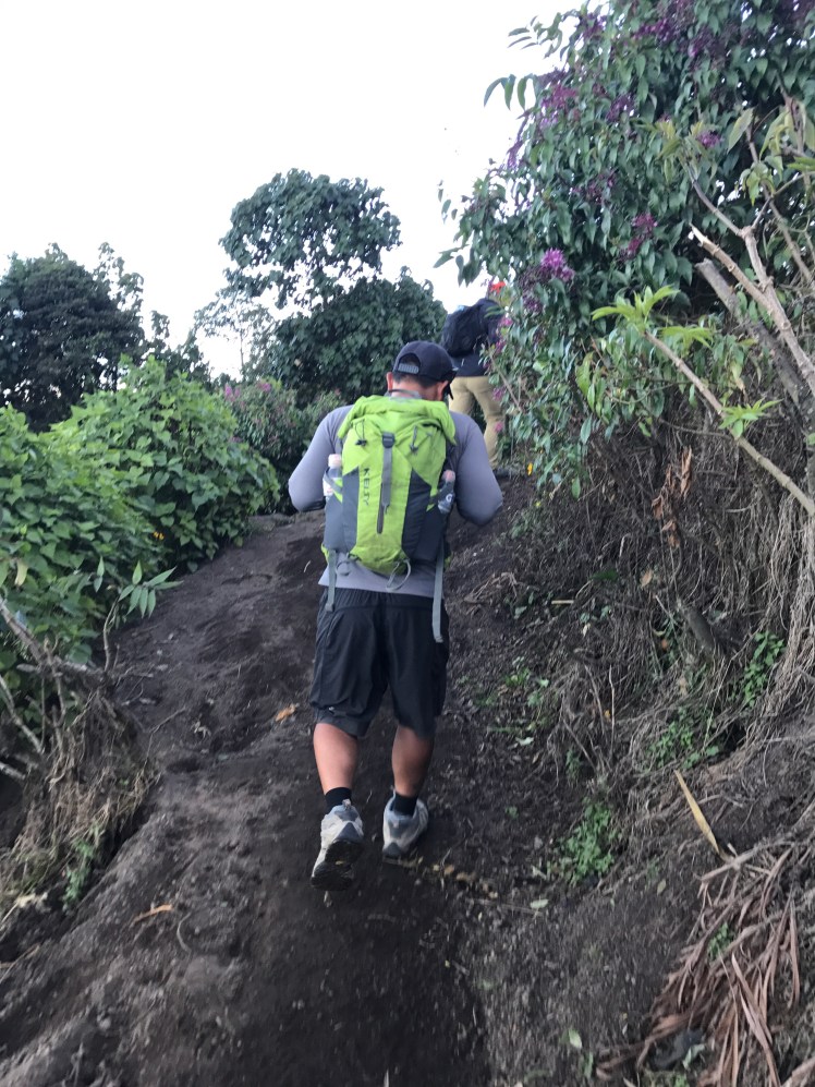 I went with Ox Expeditions, a tour company that offered a day trip all the up and down the volcano. During orientation, the guide basically gave this speech while pointing to a map: “Over here is part 1 – it’s very difficult and steep for 2 hours. Part 2 is the cloud forest – also pretty difficult for 2 hours on a dirt trail. Part 3 – again, very difficult as we go up with some loose sand for 2 hours. Lastly part 4 is the most difficult as it is straight up to the top and entirely sand.”