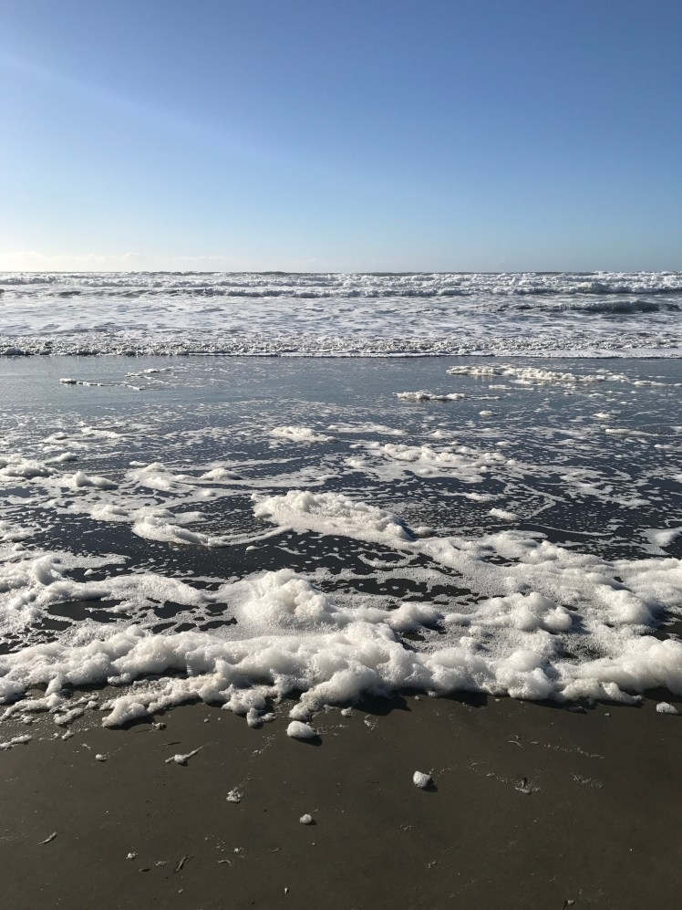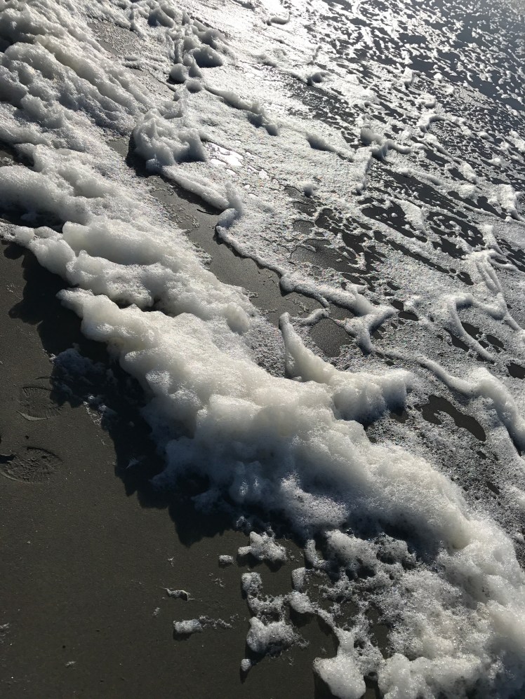 An afternoon on Ocean Beach. It’s been chilly these days in SF and that caused lots of sea foam to form on the beach…I’d never seen anything like it! So unique.