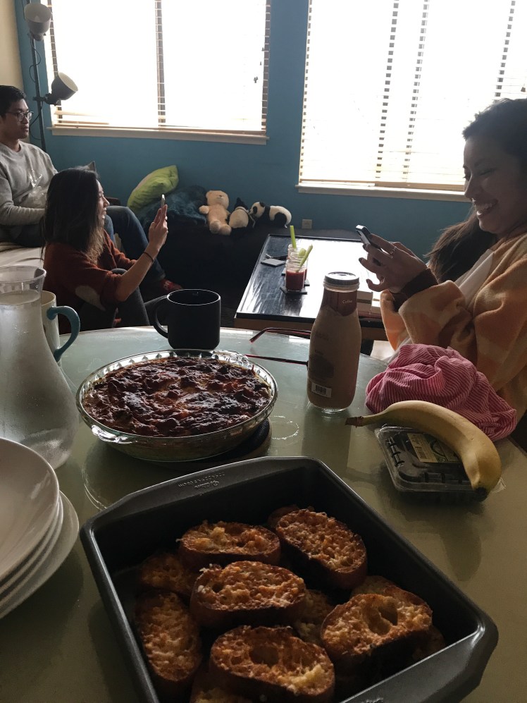 Janice hosted the shindig – we all brought something homemade to share. I contributed bloody mary’s to the group to add some extra fun ;). We stuffed our faces while enjoying Love Actually (a Christmas classic) in our pajamas.