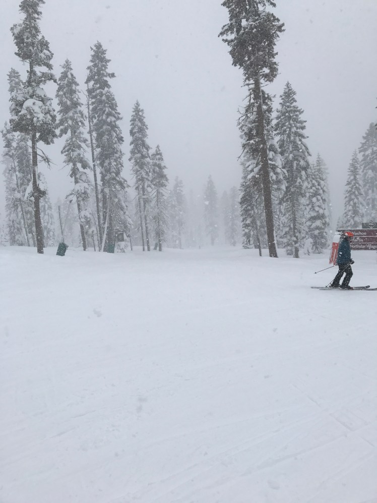 We had a slow start in the morning since it was already snowing pretty heavily, and we had a few errands to run before getting to the resort. We picked up breakfast, I needed to rent skis in Truckee and buy a ski pass, we took a shuttle to North Star resort… I forgot how many moving parts there are to a ski trip!