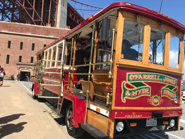 After 12-miles, I rushed home and ate lunch, showered, and got ready for a much-anticipated event…Viggy’s birthday party!!! Viggy rented out an entire trolley that took us all around SF for the afternoon. It even included an open bar. Needless to say, our friends have been so excited for this party trolley, which has been on my personal bucket list for a while now.