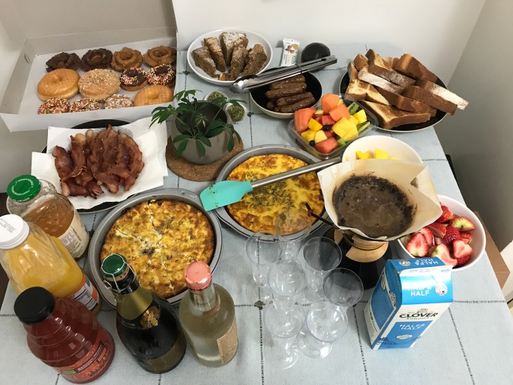 Another special activity was on the itinerary for Sunday. Janice’s wedding invitations came in and so we had a invitation-mailing brunch party with the girls! We all brought in different dishes and drinks, and we had quite the spread…we really outdid ourselves this time.