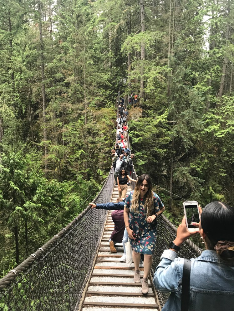 We arrived at Lynn Canyon park, and first steps were a suspension bridge that ended up being a huge photo opp. Not gonna lie, it was pretty scary seeing how high we were with no one regulating the number of people on the bridge!