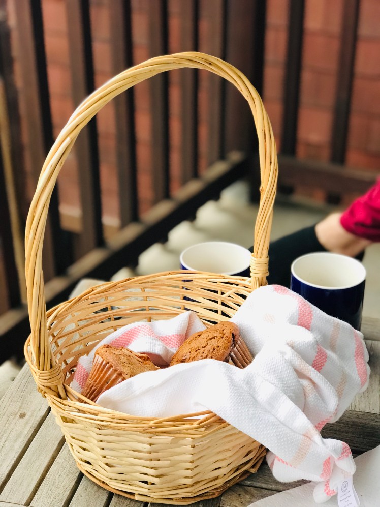 We woke up on the early side on Saturday to a nice treat from our host – a basket of muffins at our doorstep! Joe brewed some coffee and we enjoyed our breakfast on the balcony. Perfection.