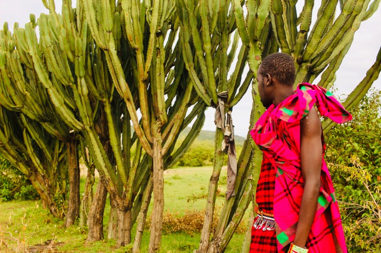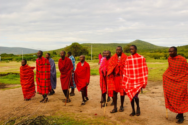 The Masai village (and many others in Kenya) wear these red blankets as a way to protect themselves from animals, since they tend to stay away from red colors. It also makes it easier to spot each other from afar.