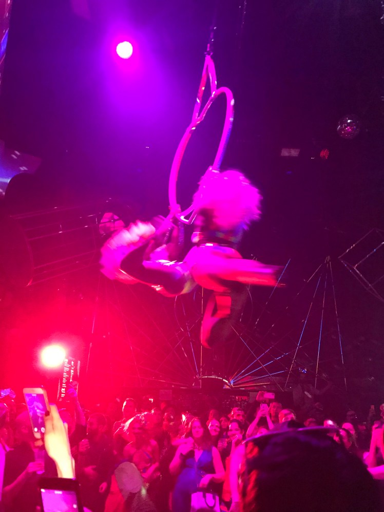 By 1am, it was finally time to go to the main event. I forgot how late New Yorkers party compared to SF. We arrived at House of Yes and I was immediately into the vibe – everyone was dressed up in their glittery costumes and surrounded by burlesque acrobatic dancers around the venue. It was a very Burning Man crowd, but with a sceney New York flare.