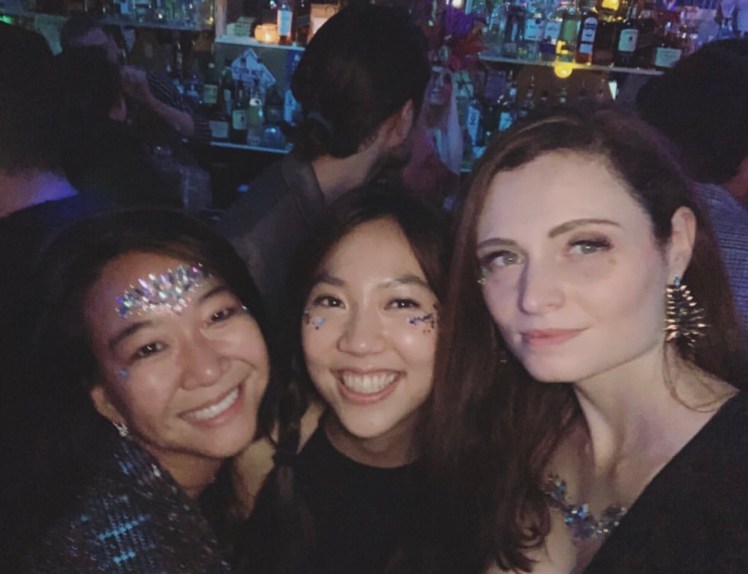 After dinner, we got ready to hit the town. We found a huge costume party at House of Yes in deep Brooklyn. Since our DIY costumes didn’t turn out, I ended up raiding Anna’s closest and we both wore glittery outfits with face jewels – I guess that’s costume-y enough 😉