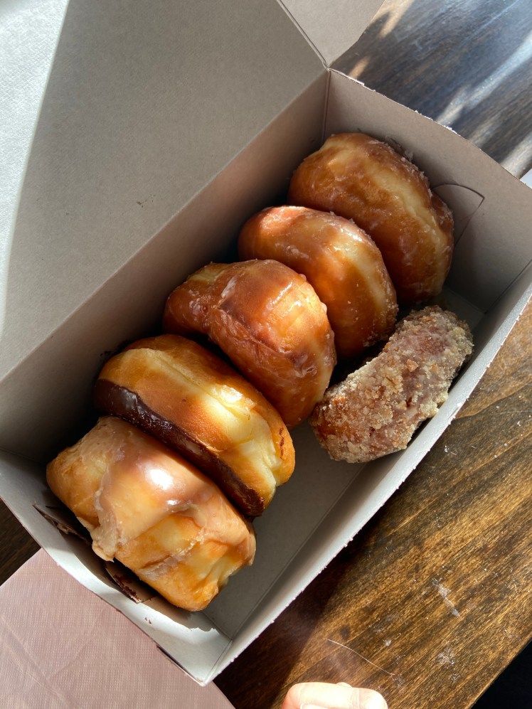 Donuts for breakfast at our neighborhood fave: Bob’s on Baker. Their glaze donuts are the die for.