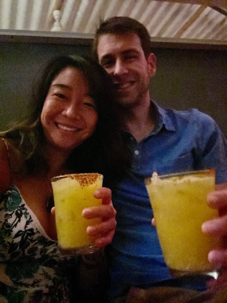 We walked north of the beach and it calmed down significantly. Joe and I decided to enjoy the sunset with a refreshing mojito and margarita. After a hectic day of travel, relaxing by the sunset finally calmed our adrenaline and reach that relaxing happy spot.