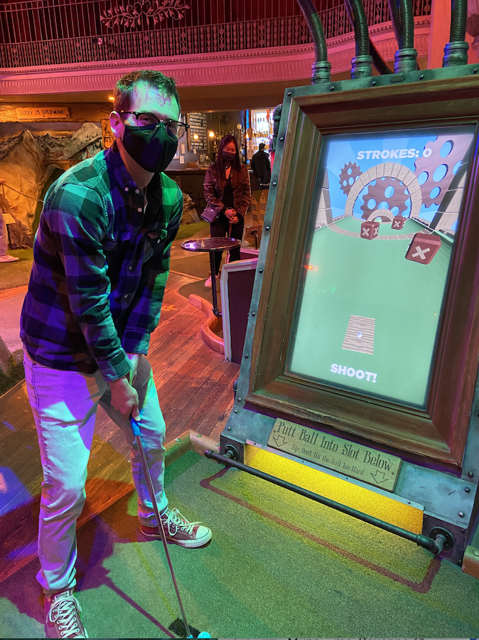 Even though we celebrated Joe’s birthday the previous weekend, Joe’s actual birthday was last Wednesday, so I planned a birthday date for us at Urban Putt, an indoor mini golf course in the Mission. It was our first time mini-golfing in the city and it turned out to be a fun date idea! There were 13 courses in total that were pretty small (since thereβs not a lot of real estate in the city) but it made up in its quirkiness and creative courses.