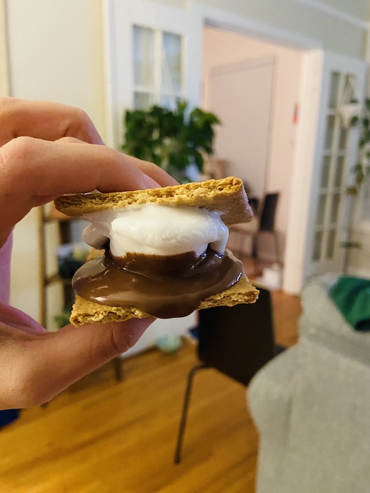 The rest of the day was spent watching true crime documentaries and chilling inside. We made s’mores where we replaced Hershey’s chocolate with a Reese’s cup. If you haven’t tried this yet, you must!