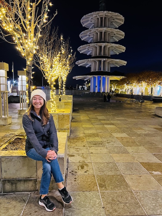 In the evening, we walked to Japan Town for dinner. I love Japan Town because it’s a small pocket of the city with no cars and it feels like you’re in a totally different city. Christmas lights illuminated the trees and there was a cozy vibe.