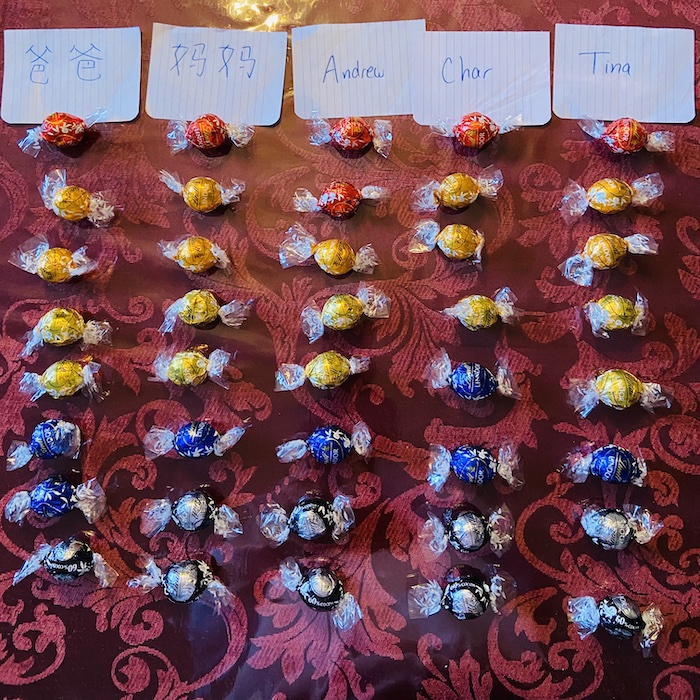 We get a lot of chocolate every year for Christmas. My whole family is full of chocoholics so we split them evenly. π