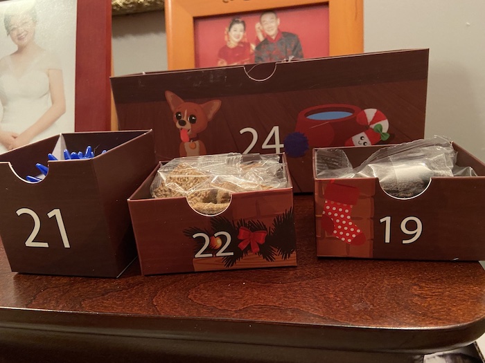 The dog advent calendar from Costco = 10/10. This kept Constantine very entertained.