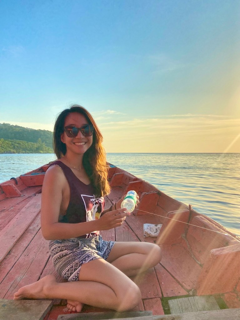 After the sun went down, we stopped for our last activity – spotting bioluminescent plankton in the ocean. I was a little hesitant to jump in the ocean in pitch black, but everyone did it so I hopped in. 🙂 I’m so glad I did because the bioluminescent plankton was SO cool! I’ve seen this plankton in a few spots around the world, but Cambodia was the brightest yet. I think it helped that there was no light around us which made the plankton brighter.