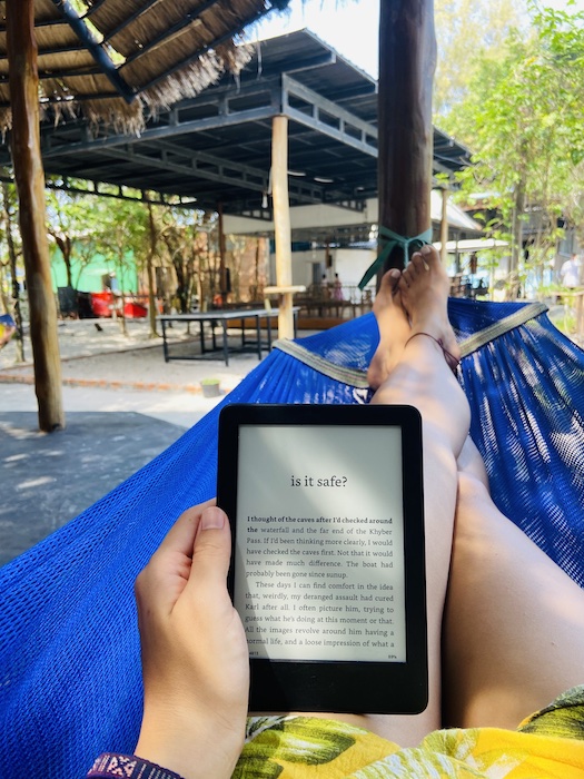 There were plenty of hammocks and space to relax. I spent a lot of time like this – I finished my current book here, The Beach, which seemed appropriate. 😉