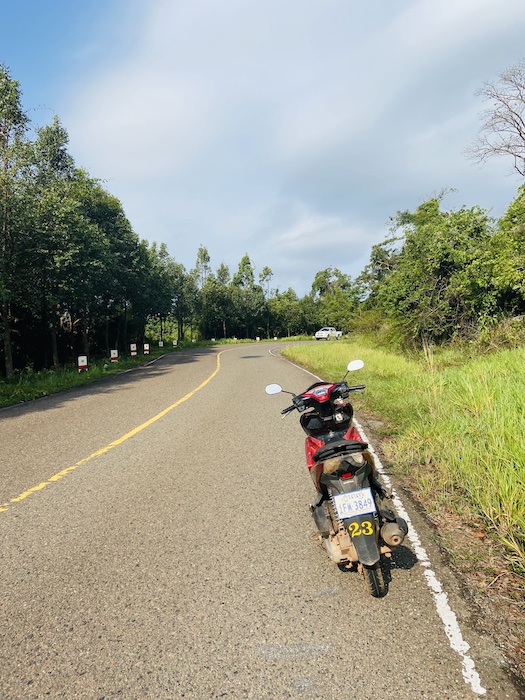After my first 4 days in Kampot, I was excited for this next activity: Bokor Mountain. This was a much-anticipated day as it would be my longest driving day on my scooter yet (~4 hours). Bokor Mountain is a key attraction in Kampot – sitting 1,100 meters high, people go up there for the cool weather, historical sites, and magnificent views overlooking the whole province. I was excited to have a change of scenery from the countryside to mountains.