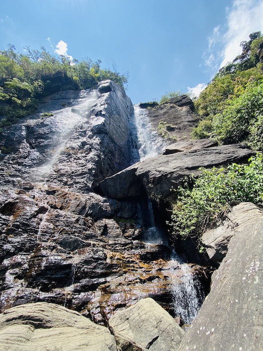 The first stop was Ramboda waterfall. There were several waterfall options around town, but our hostel manager recommended Ramboda as it was the only option where we could swim (versus the others where you just snap a picture and go). We took his advice, and we got to the waterfall by 10am to beat the crowds.