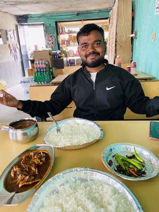 Finally, we made it to Koksar. Subash went off for a photoshoot, so Ganesh and I had a few hours to kill in the village. He took me to his favorite family-run restaurant where we had chai + goat stew for breakfast. It was my first time eating meat in India and it hit the spot!