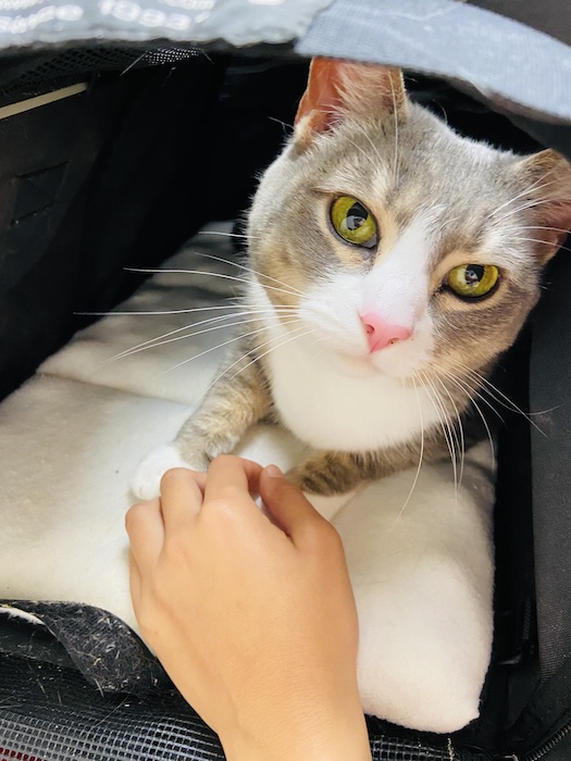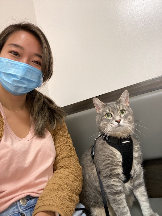 The cats were SUPER nervous at the vet. It seems like any new environment makes them very anxious. Ben was very vocal as he was hissing at everyone and trying to make his escape. Ellie, on the other hand, was very quiet and retreated into her carrier – she was definitely the easier cat to manage.