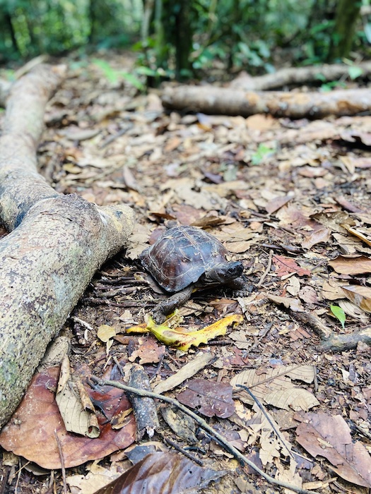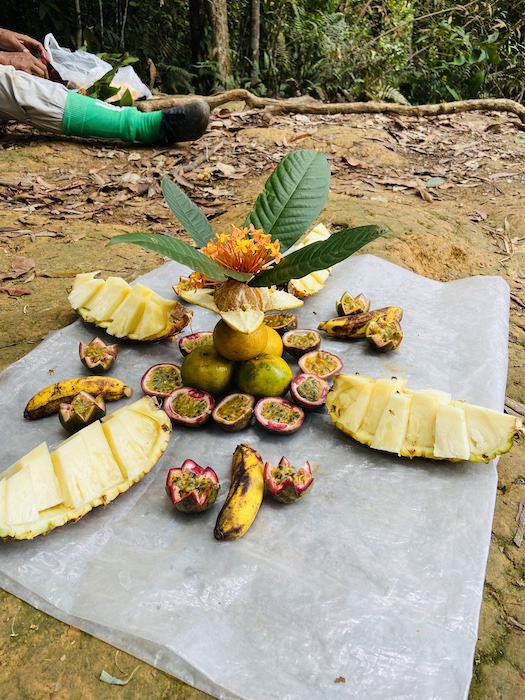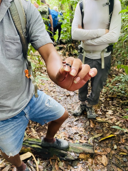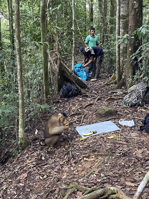 While we ate our fruit, this monkey came and stole some! It wasn’t the first animal that approached us for food. From the way they behaved, it was clear the animals in this part of the jungle knew how to leverage humans for food, but fortunately, our tour guide knew how to fend them off.
