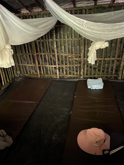 Our beds were thin mats, a mosquito net, and a blanket. I made a pillow out of some clothes. I loved being in the middle of the jungle, but to be frank, one night was enough for me!
