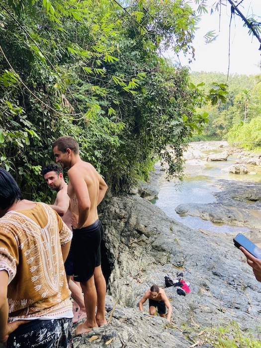 The water felt SO nice after driving in the sun on our bikes. There was also a cliff jumping spot which the boys tried out.