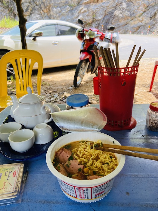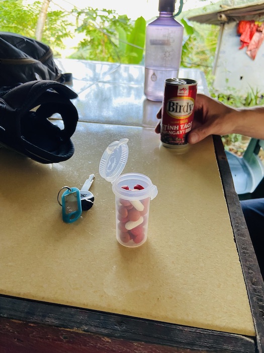 A driving break for Tylenol and coffee. By day 4, our backs were killing all three of us! Despite feeling exhausted, I tried to savor these last few hours of driving as the Hà Giang loop was coming to an end.
