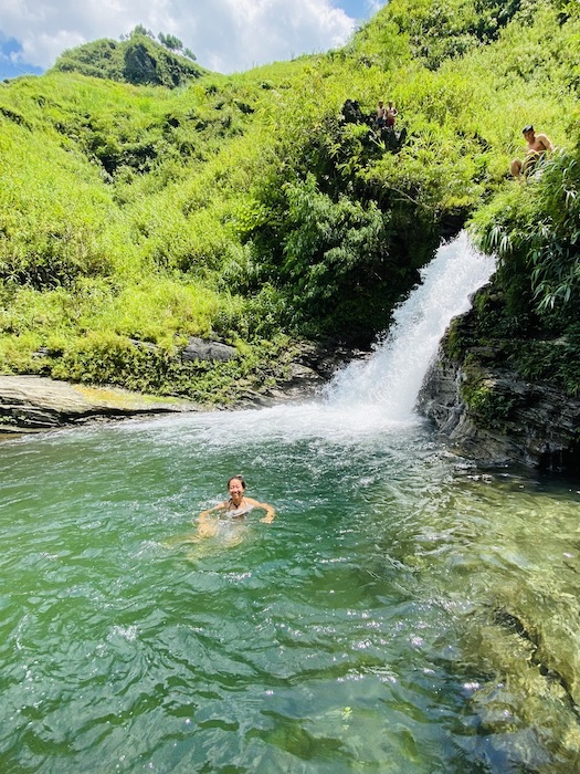 The waterfall was magical! The fresh blue water felt amazing in the heat of the day. There was hardly anyone else there except the kids we picked up. 😛 Besides the China border, this was one of the highlights of the loop.