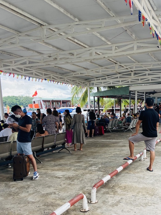 After my chill day and a full night’s sleep, I was ready to party! Vincent and Nouhad met me at the hostel, and we took a car to the harbor. Immediately, we joined a massive group of tourists waiting for different boats. You’ll hear a lot in this post about how there were sooo many tourists in Halong Bay. I’m not above doing touristy things, but coming from Ha Giang which was so remote, the traffic in Halong Bay was a shock. 😛