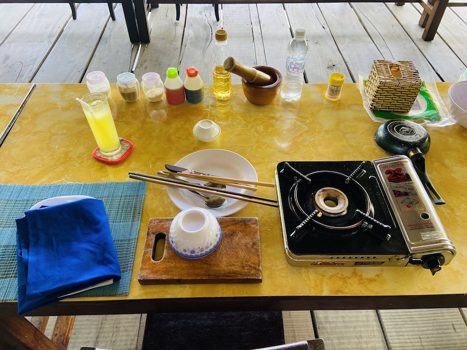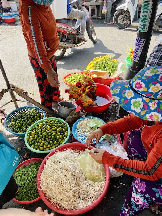 Our class started off with shopping at the morning market for all the ingredients we’d cook with. I actually went to this market the day before, but it was nice to go with a local and see what prices we got. Our total grocery bill came out to $2 per person!