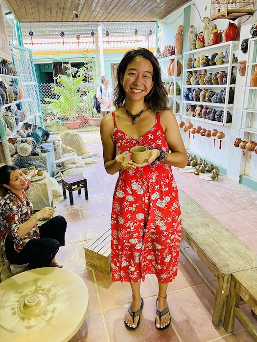 In the afternoon, I ventured out to Thanh Ha Pottery Village, which was recommended by one of the guests. It was a shop that sold hand-made pottery items and even gave free lessons. I made a small cup with them and bought an item in return.