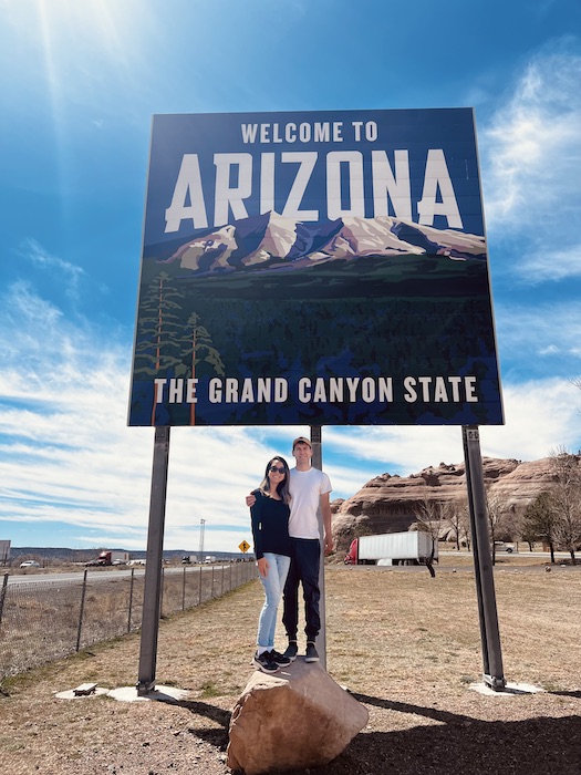 The drive through Arizona was interesting and diverse – Arizona was more mountainous than I imagined, from desert canyons to snowy mountains lined with pine trees. We spent one night in Flagstaff, which is the entry town for the Grand Canyon. We wish we had time to visit the Grand Canyon, but with our driving-on-weekends and resting-on-weekdays schedule, we didnβt have time for many stops in Arizona.