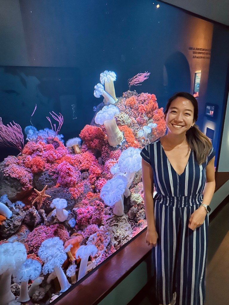 Then, we drove into SF and went to the California Academy of Science, a natural history museum right in Golden Gate Park. Every Thursday night, the museum hosts a “Nightlife” event – it’s geared for adults as they play music and serve cocktails while people explore the exhibits in the dark. It was pretty crowded as it happened to be 4/20 so there were a lot of stoners wandering around. π
