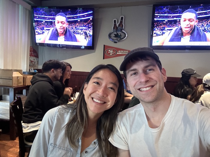 Joe picked me up from happy hour, and we headed to a sports bar in Oakland to catch the Warriors game. Joe and I both enjoy basketball – we’re not die-hard fans but we try to keep up during playoff season, especially when the Warriors are playing. San Francisco has major Warriors pride, and I love the energy throughout the city during playoffs as everyone wears their Warriors gear and carves out time to watch games.