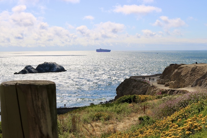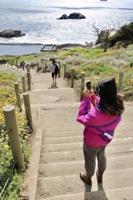 After a fun and stimulating time, we headed home for a quick break. The sun came out, so we went right back outside for an outdoor activity. Joe wanted to see the coast, so we drove out to Lands End and did a short, steep hike to Sutro Baths. We’ve done this hike many times, and I think it’s one of the best hikes in the city with some of the best views.
