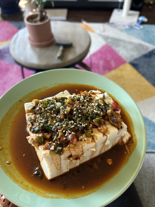 Lunch was silken tofu topped with soy sauce, chili oil, scallions, garlic, and sesame oil. Another recipe I’ve been wanting to try as I’m trying to build up my quick-recipe repertoire for weekday lunches. It was absolutely delicious and I’ll be making this again for sure!