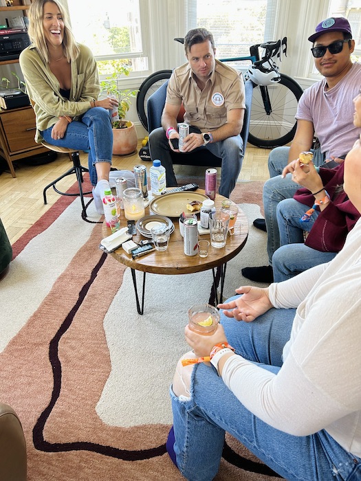 The same group got together this past weekend for an Outside Lands pregame – most of our friends attended Outside Lands, the largest music festival in SF that takes place every August. Joe and I didn’t get tickets, but we decided to join the pregame fun. We all met at Rene’s apartment and hung out for a few hours before the festival. Caffeine, electrolytes, and alcohol were passed around – festivals at this age take a bit more strategizing. 😛