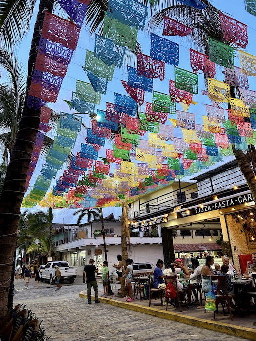 A long-time favorite of ours was Ruben’s, a no-frills American spot. Sometimes we just needed a break from Mexican food, and this was our go-to. It’s on one of the iconic streets of Sayulita filled with colorful flags, and it was a lively street in the evenings. There was a rotation of performers vying for this prime spot, so our dinners here were accompanied by live bands, fire dancers, and more.