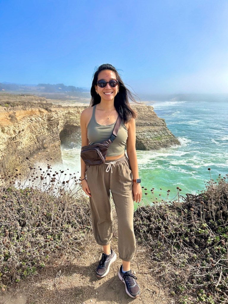 The hike was gorgeous! It had a low effort-to-reward ratio – my favorite kind of hike. The highlight was the 1-mile stretch along the coast. It felt more natural and rugged than the coastal hikes closer to the city. We watched as the large waves crashed into the tall cliffs.