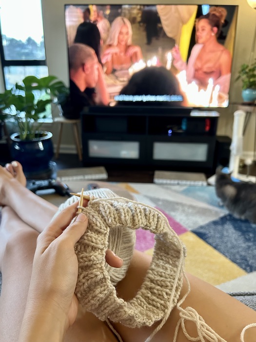 I’ve also taken up knitting recently. I loved knitting as a kid, and I was inspired to bring it back into my life. I’ve enjoyed having this calming activity in the midst of a stressful month.